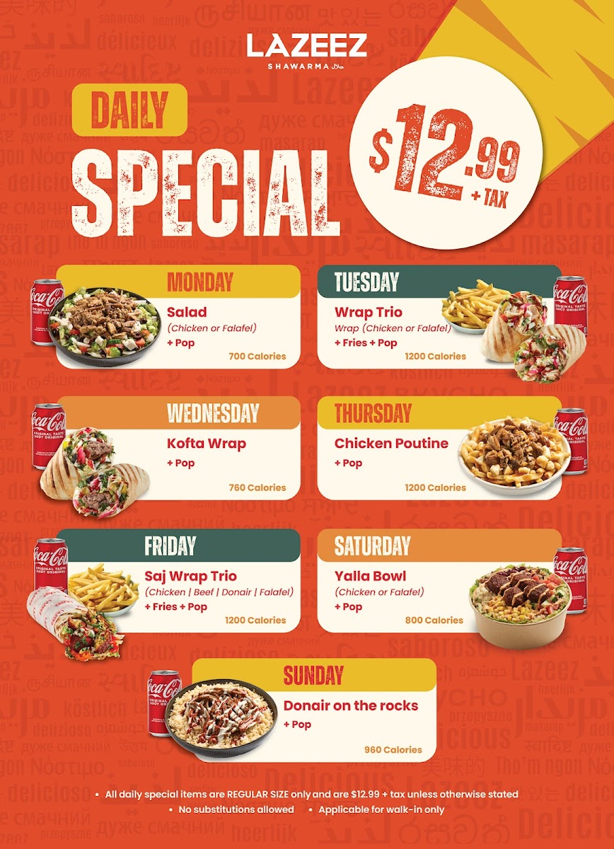 And don't forget to wash it all down with a refreshing Lazeez Tropical Nectar Juice or Laban.